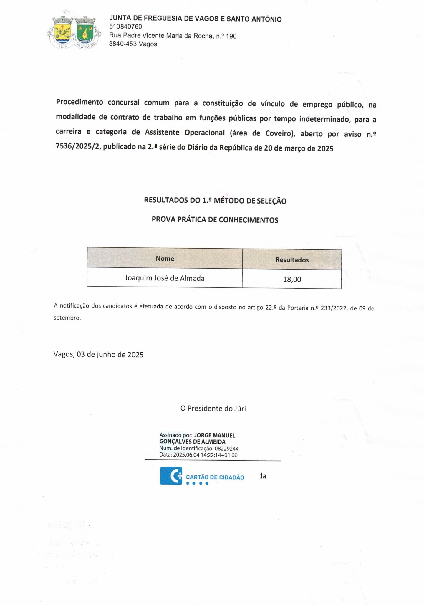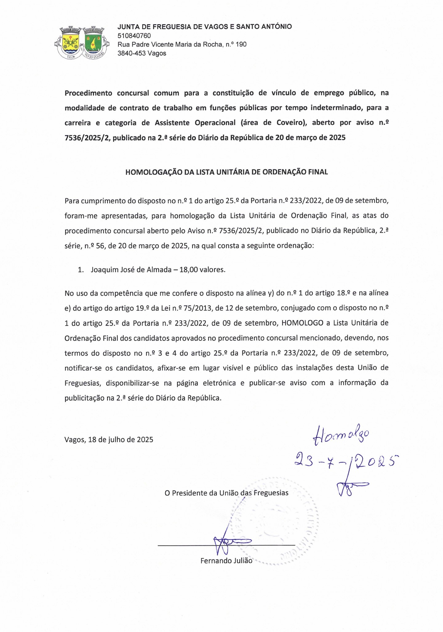 UNIÃO DE FREGUESIAS DE VAGOS E SANTO ANTÓNIO