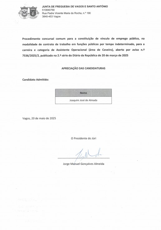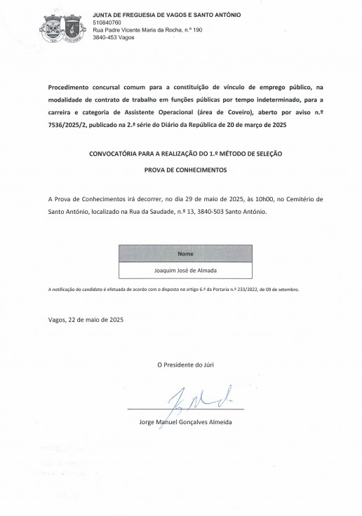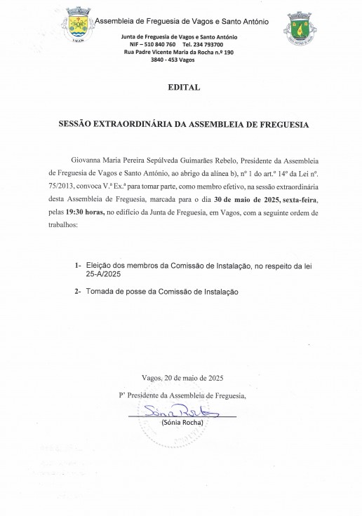 UNIÃO DE FREGUESIAS DE VAGOS E SANTO ANTÓNIO