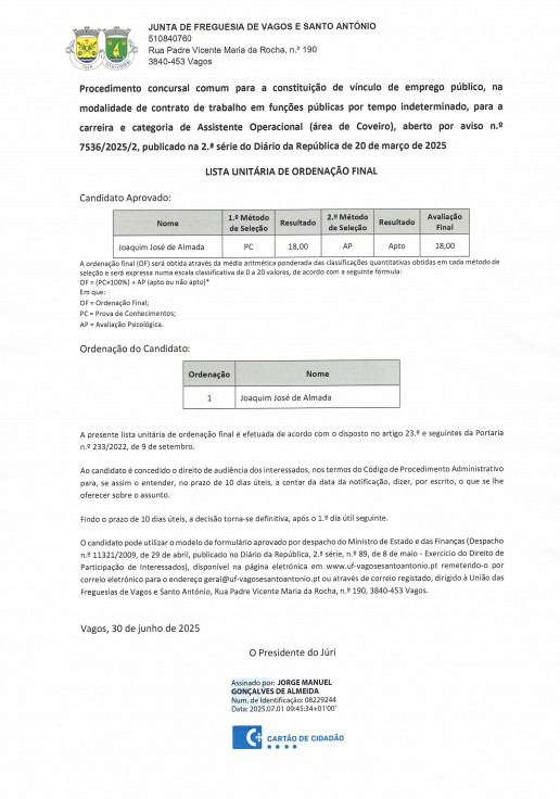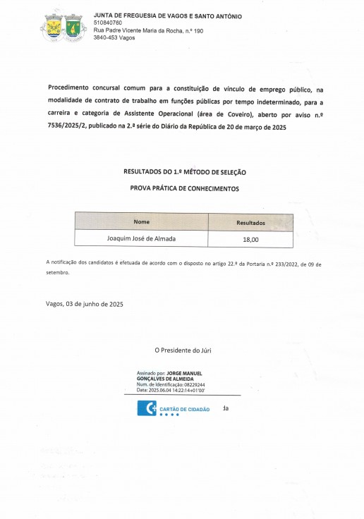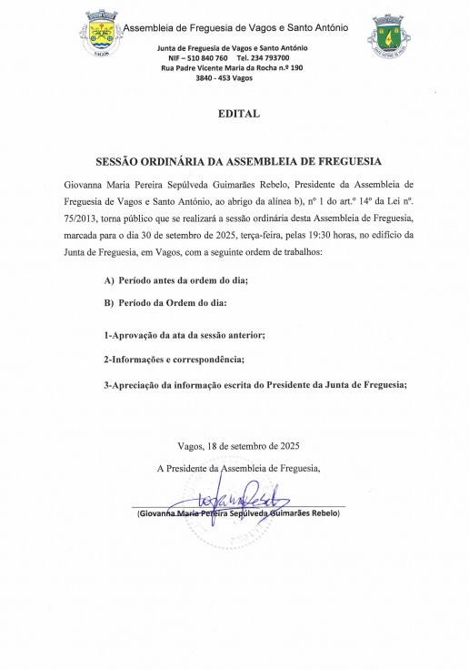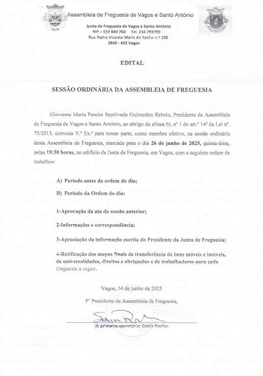 UNIÃO DE FREGUESIAS DE VAGOS E SANTO ANTÓNIO